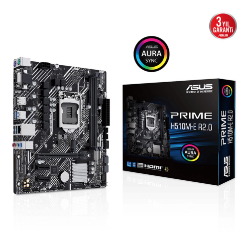 ASUS PRIME H510M-E R2.0, 2xDDR4, M.2, D-SUB, HDMI, DP, 10-11.Nesil, LGA1200 Soket, Anakart